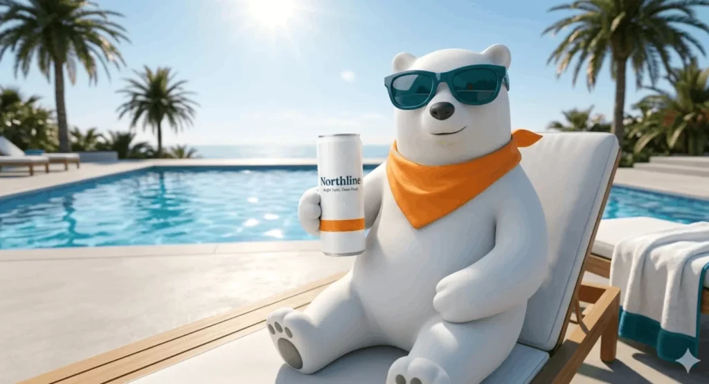 Example: Northline uses bright natural light, soft shadows, and clean summer backgrounds with teal and orange accents. That rule stays the same whether the asset is a square ad or a blog header.