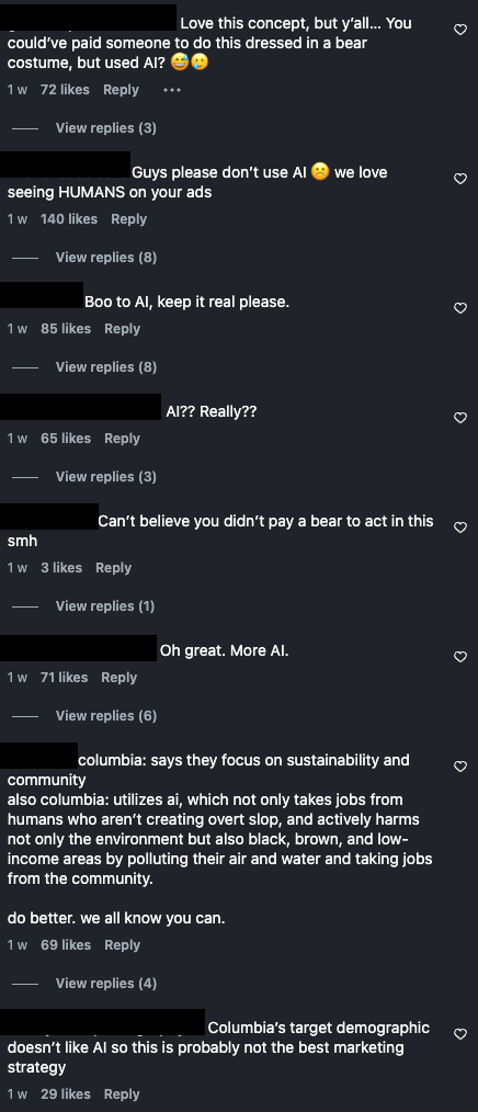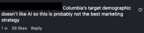The first problem isn’t the ad itself – it’s actually the use of AI. Which Columbia’s audience made quite clear: