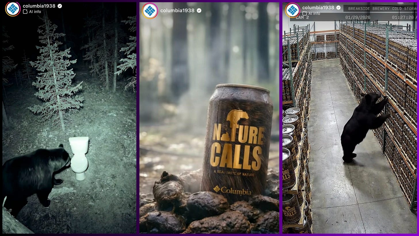 Of course, Columbia isn’t to blame for AI and sustainability; every brand is doing it, but the point is how misaligned those AI posts are from their audience and brand.