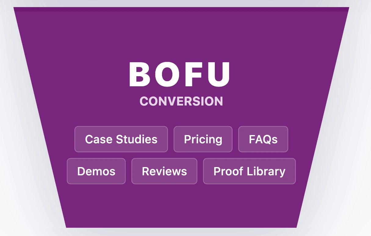 | BoFu | Help me feel certain. | Prove fit and remove uncertainty | case studies, product demos, explainers, implementation pages, buying FAQs |