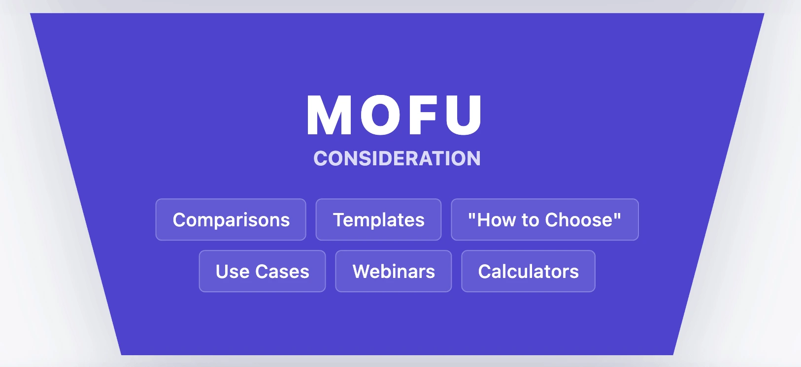 MoFu (middle of funnel) content is for people who understand the problem and are comparing approaches. It helps them choose by giving options, tradeoffs, and decision criteria. Common MoFu formats include “how to choose” guides, comparisons, templates, use case walkthroughs, and process breakdowns.