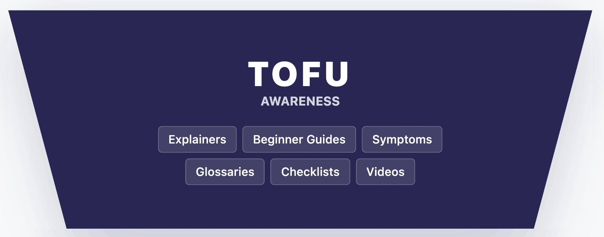| ToFu | Help me understand this. | Define the problem and teach the basics | explainers, beginner guides, definitions, simple checklists |
